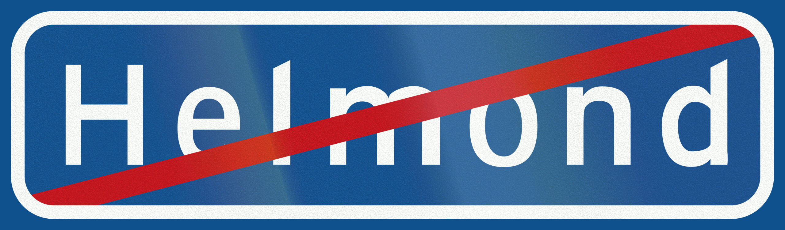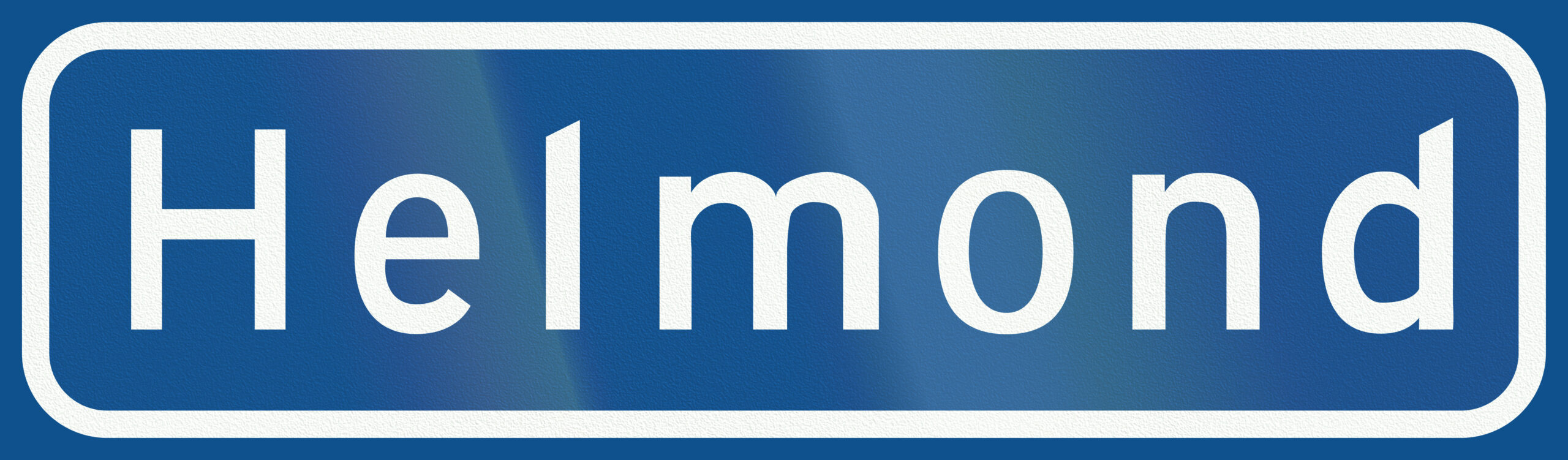 A blue rectangular sign showing a town name, for example Helmond, tells you that you’re entering a built-up area. Inside these zones, the maximum speed limit is 50 km/h, unless otherwise posted.